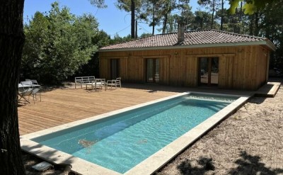 Implantée sur un magnifique terrain de 1 000 m² ouvert sur la forêt, la maison dispose d’une immense terrasse en bois, idéale pour vivre dehors toute la journée, ainsi que d’une piscine neuve au sel, parfaitement intégrée à l’environnement naturel.