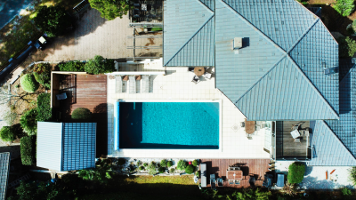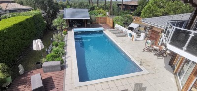Cette superbe villa est entourée d’un jardin paysager de 1500 M2 ombragé offrant 4 terrasses et une pergola pour la détente.