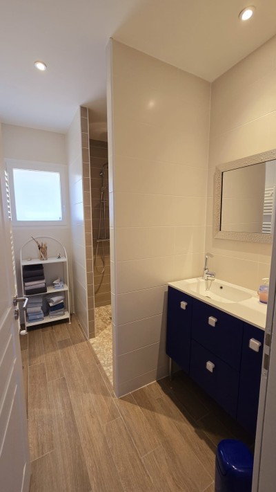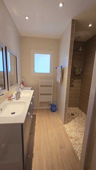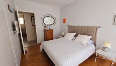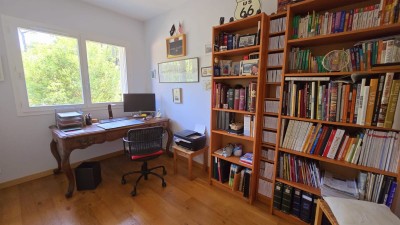 Côté gauche : Dégagement avec toilettes, 2 salles d'eau, une chambre aménagée en bureau, une chambre supplémentaire